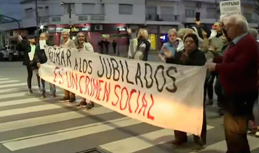 En la puerta de la Quinta Presidencial, un nutrido grupos de jubilados se manifestaron contra “la obsenidad del presidente y los diputados de festejar con un asado la comida que nos sacan a nosotros”.