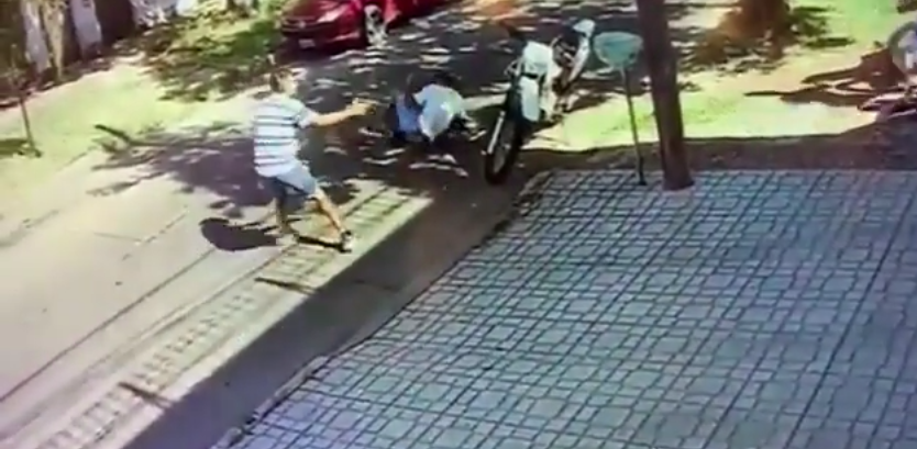El delincuente se sentó en la moto, intentó encenderla y como no logró hacerlo, los jóvenes reaccionaron para evitar el ilícito. Ante esa situación, el malviviente le disparó en una pierna a uno de ellos y gatilló varias veces más pero afortunadamente el arma se trabó.