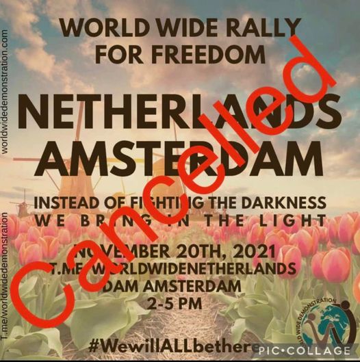 Una manifestación contra las restricciones adoptadas para frenar el coronavirus que estaba prevista para este sábado en Ámsterdam fue cancelada después de que otra protesta terminara ayer en graves hechos de violencia en Rotterdam, anunció la organización.