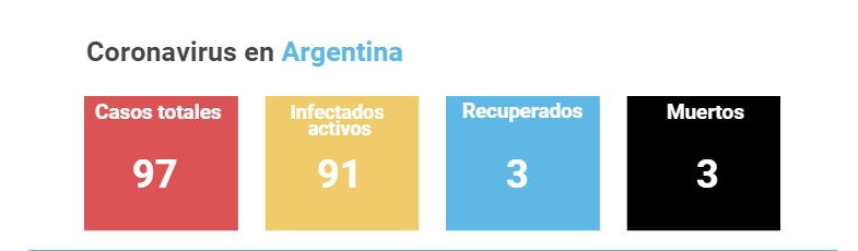 Respecto a los contagiados, se aclaró que el martes se había informado que un paciente en la provincia de Buenos Aires tenía COVID-19, pero este miércoles se explicó que se reclasificó como paciente en seguimiento y no constituía un caso nuevo, ya que se trató de una persona a la que se le realizó un laboratorio para alta médica.