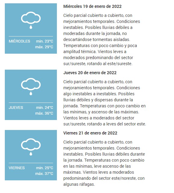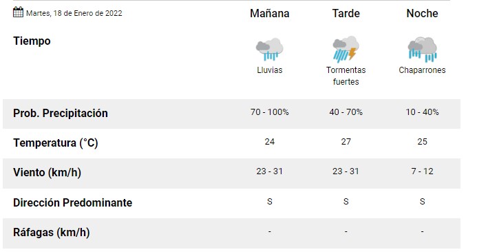 El SMN pronostica para hoy martes 18 de enero 2022 para la ciudad de Santa Fe