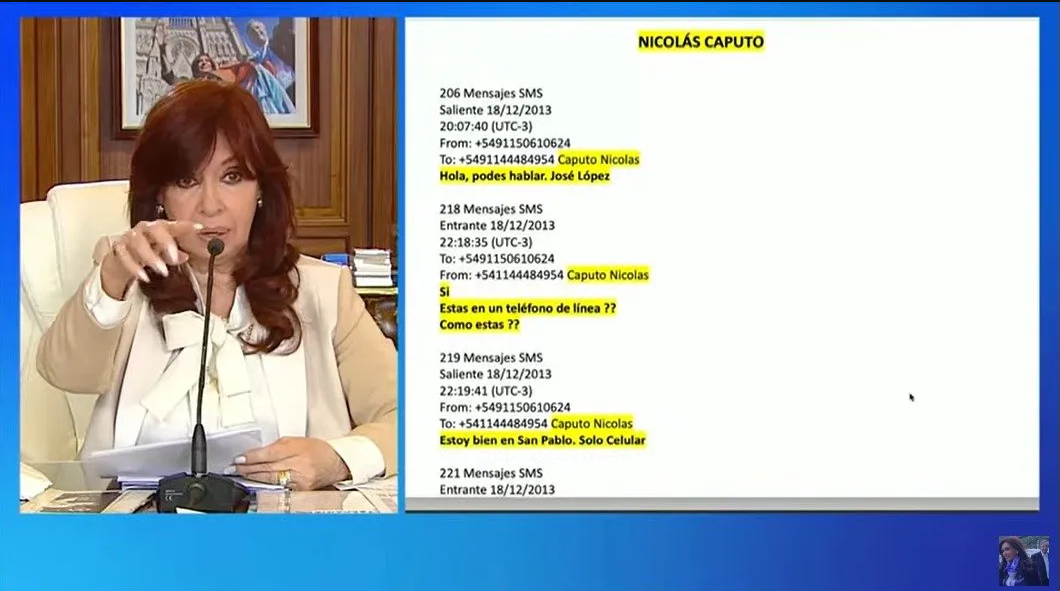 -«Además de mentiras y de ficciones, no leen las pruebas que recaban: el fiscal Luciani dijo que durante meses leyó el desgrabado del teléfono de José López. Mi sorpresa cuando encuentro a las 6.000 páginas del desgrabado, tiene mensajes de José López con Nicolás Caputo, el ´hermano´ de Mauricio Macri».