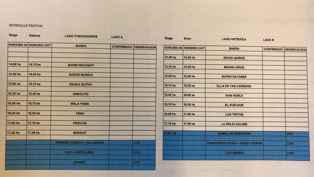 TENTATIVO – Cronograma Casa Rosada