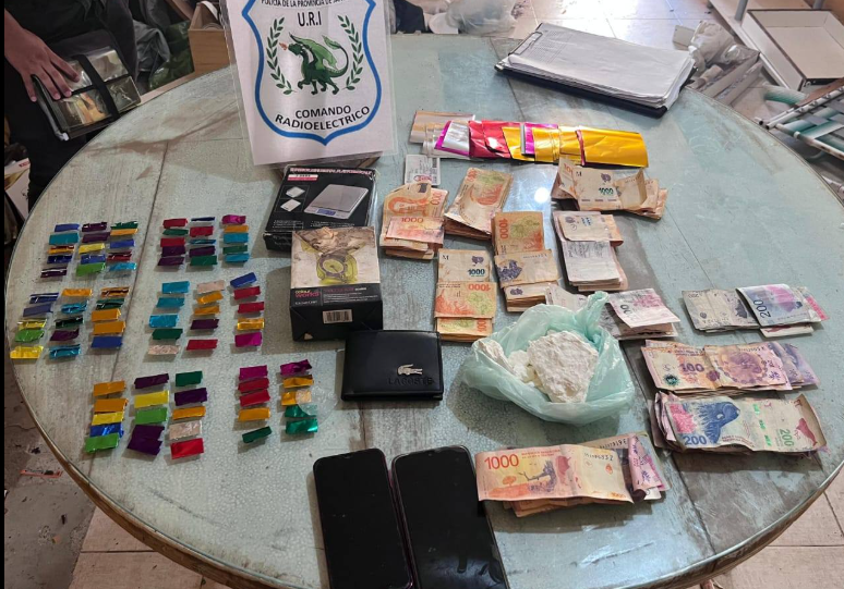 En el segundo domicilio se hallaron envoltorios de presunta droga, un trozo compacto de estupefaciente, balanzas y dinero en efectivo, elementos relacionados con microtráfico. Allí fueron detenidos J.L.V., de 41 años, y P.N.E., de 41 años.
