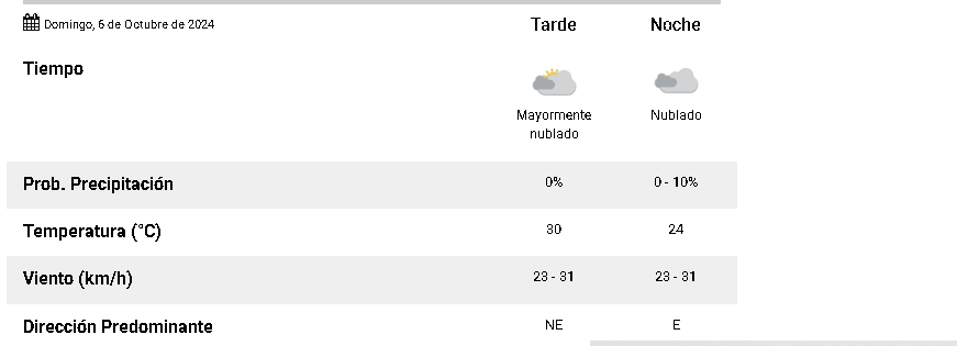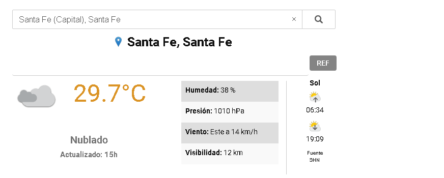 En tanto que el Centro de Informaciones Meteorológicas de la FICH pronostica para hoy domingo 6 de octubre 2024 para la ciudad de Santa Fe