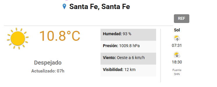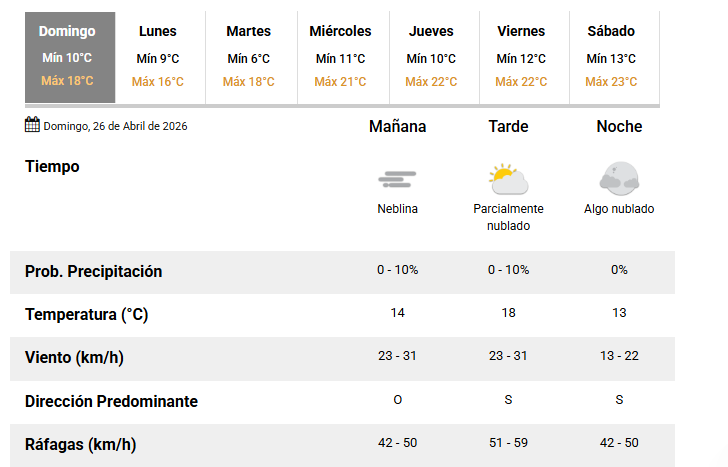 El SMN pronostica para hoy domingo 26 de abril 2026 en la ciudad de Santa Fe de la Vera Cruz capital de la provincia de Santa Fe República Argentina.