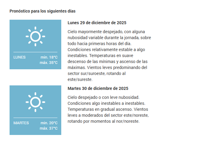 En tanto que el Centro de Informaciones Meteorológicas de la FICH-.UNL pronostica para hoy domingo 28 de diciembre 2025 en la ciudad de Santa Fe de la Vera Cruz capital de la provincia de Santa Fe República Argentina.