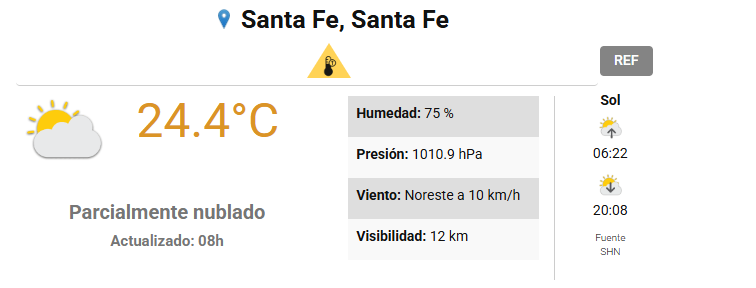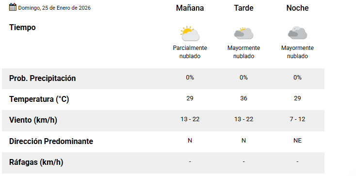 En tanto que el Centro de Informaciones Meteorológicas de la FICH-UNL pronostica para hoy domingo 25 de enero 2026 en la ciudad de Santa Fe de la Vera Cruz capital de la provincia de Santa Fe República Argentina.