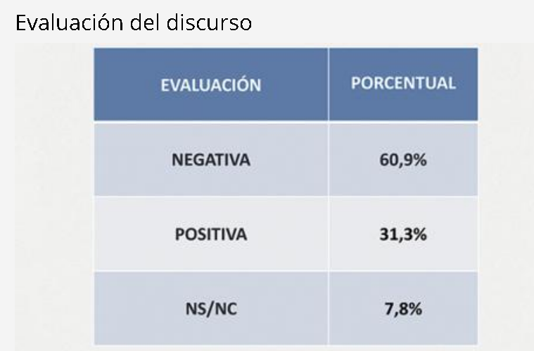 El discurso de Mauricio Macri produjo una fuerte reacción negativa, incluso dentro de los ciudadanos que se consideran independientes. Nada menos que el 61 por ciento calificó con un “mal” o un “muy mal” el discurso. Hubo un 25 por ciento que sintió bronca, un 20 por ciento preocupación y otro 20 por ciento incertidumbre.