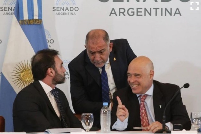 En en Salón Gris, y acompañado por Villarruel, lograron reunir a los principales díscolos de cada partido nacional y otros de partidos provinciales como José María Carambia (Santa Cruz), que amenazó hasta último momento con presentar un dictamen propio al igual que el senador Martín Lousteau (CABA). También estuvo Guadalupe Tagliaferri (CABA), del PRO.