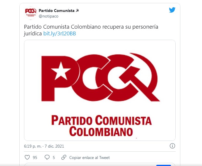 El Partido Comunista (PC) de Colombia recuperó su personería jurídica, que fue dada de baja en 1998 después de perder a buena parte de su dirigencia en la masacre que siguió en los 80 a quienes integraron la Unión Patriótica (UP).