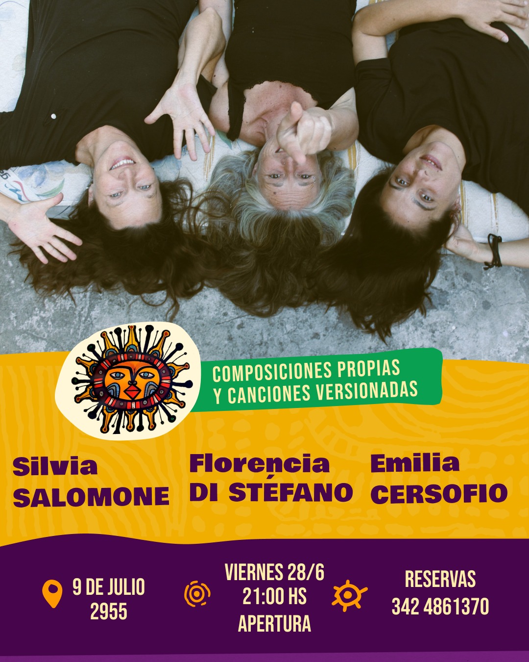 Emilia Cersofio, Florencia Di Stéfano y Silvia “Rusa” Salomone se reúnen para ofrecer un recital que invita a viajar por las composiciones propias de cada una como así también de canciones versionadas que interpretarán en un trío exquisito, en el que se podrá apreciar, por medio de sus voces, el bajo, la guitarra y la percusión, la música como medio de expresión, de comunicación.
