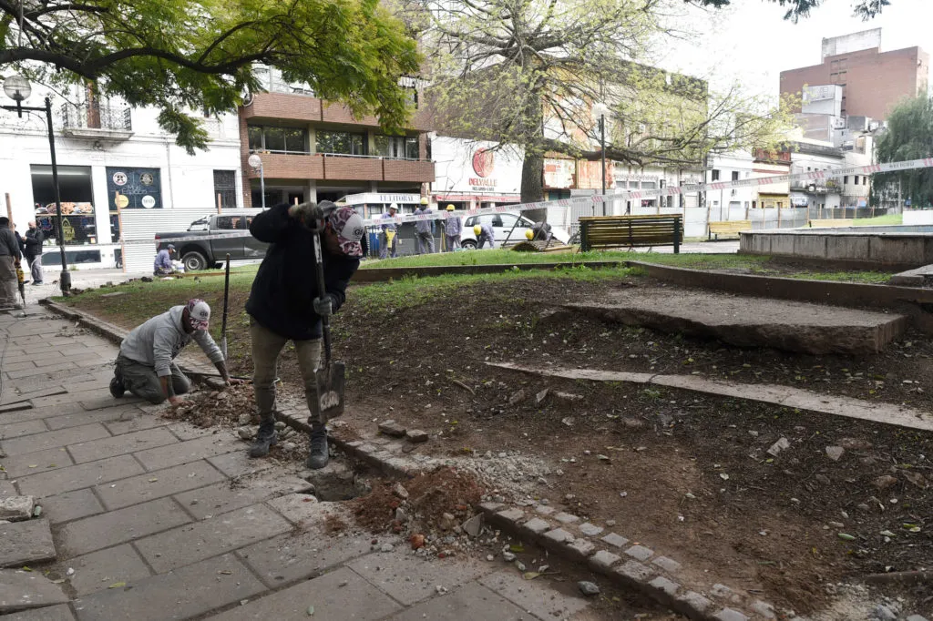 Mendiondo, por su parte, contó que “las tareas comenzaron con el cierre de la parte central de la plaza, con el fin de trabajar en el interior primero y luego en la parte perimetral”. En esa línea, enumeró que “se están recuperando los adoquines, algunas especies arbóreas y los bancos que luego serán restaurados”.