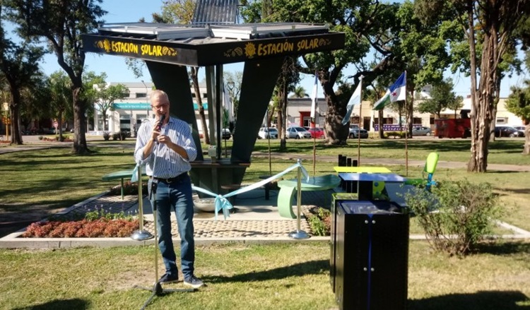 El Intendente de Avellaneda, Dionisio Scarpin, junto al Presidente del Concejo Municipal, Martín Ponticelli; el Secretario de Gobierno y Participación Ciudadana, Gonzalo Braidot y María Victoria Delbón, integrante de Sustenta Litoral encabezaron, la inauguración de la Estación solar ubicada en la Plaza Central de la ciudad.