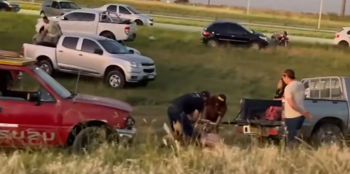 Tras el siniestro vial, y pese a la presencia de efectivos policiales en el lugar, varias personas se acercaron a la traza y comenzaron a faenar animales en plena autopista, generando una situación de descontrol y riesgo tanto sanitario como vial. La secuencia quedó registrada en videos que rápidamente se difundieron en redes sociales.