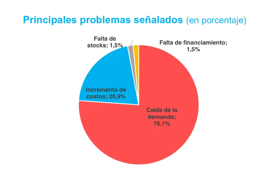 El 76% de las empresas encuestadas señaló la caída de la demanda como el principal problema durante este cuarto bimestre del 2024. La percepción sobre el problema de la demanda subió 4 puntos porcentuales respecto a la encuesta del bimestre anterior, cuando concentraba el 72% de las respuestas. La gente tiene cada vez menos dinero para comprar ropa.