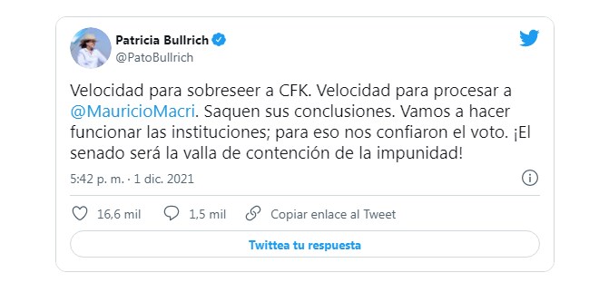 “Es un gran paso. No es para decir ‘qué es una alegría’, pero nos dio la tranquilidad de que no estábamos tan errados en lo que planteábamos. Tenemos la seguridad de que (Mauricio) Macri va a ir a juicio porque hay pruebas contundentes”, señaló Rodríguez en diálogo con El Destape Radio.