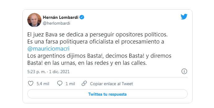 “Todos hablan. Habla Lombardi, habla Patricia Bullrich, pero no tienen ni idea. Hay una causa por espionaje que Macri les hizo a propia gente de él, y ahí están de querellantes (María Eugenia) Vidal, (Horacio Rodríguez) Larreta y (Diego) Santilli. No es nuevo, siempre lo hizo, y nos investigó a nosotros que somos las víctimas”, puntualizó.