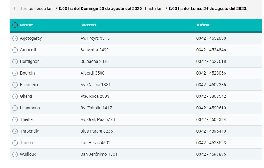 Farmacias de turno: Domingo 23 de agosto 2020, para las ciudades de Santa Fe , Santo Tomé , Esperanza