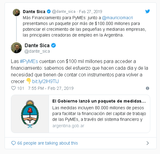 El miércoles pasado, en la localidad de Timbúes, el Presidente Mauricio Macri anunció una línea de financiamiento para pymes por 100.000 millones de pesos. Detalló que se acordó con 27 entidades financieras públicas y privadas una tasas que estará en entre el 25% y 29%. “Esto es una ayuda hacia la normalidad, gracias a que estamos logrando una estabilidad cambiaria y tenemos un Banco Central que tiene una política monetaria muy clara”, reflejó.