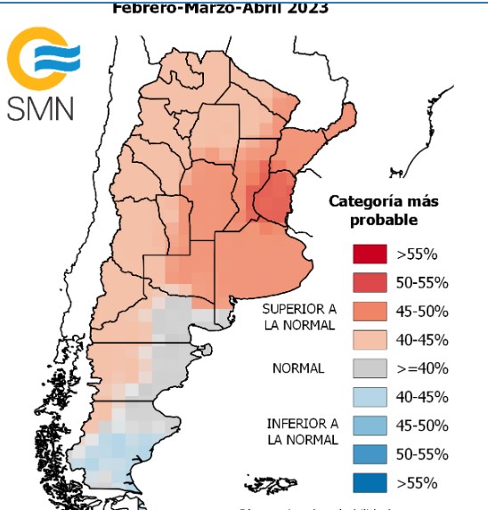 Así se desprende del informe trimestral para febrero, marzo y abril del Servicio Meteorológico Nacional. Respecto a las lluvias, las mismas serán “normales o inferiores a las normales”.