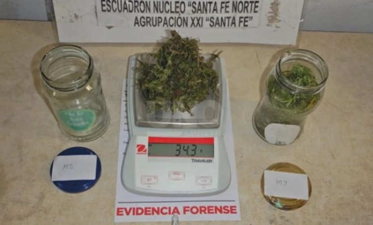 Los gendarmes, en un patrullero y caminantes, buscaron a dos testigos cuando revisaron la mochila de los dos muchachos y hallaron frascos con vegetales, los que luego, los químicos de la fuerza nacional los examinaron mediante el narcotest y constataron que se trataba de cannabis sativa o marihuana.