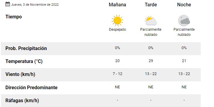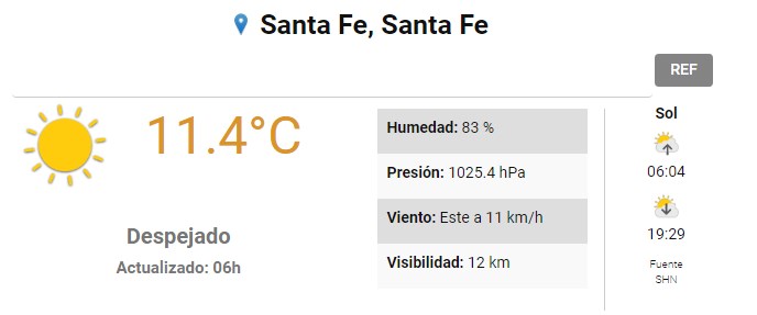 El SMN pronostica para hoy jueves 3 de noviembre 2022 para la ciudad de Santa Fe:
