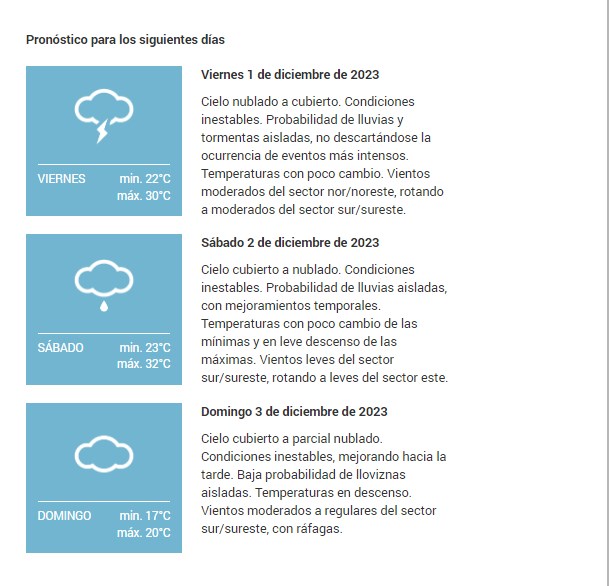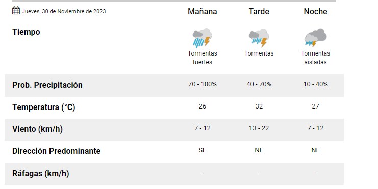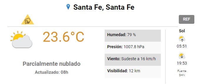 El SMN pronostica para hoy jueves 30 de noviembre 2023 para la ciudad de Santa Fe