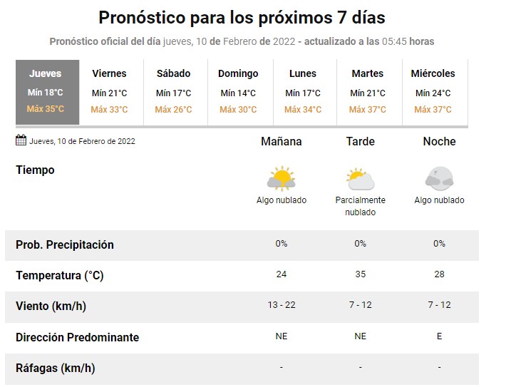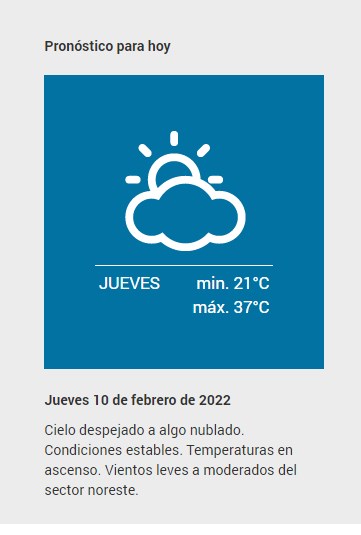 El SMN pronostica para hoy jueves 10 de febrero 2022 para la ciudad de Santa Fe