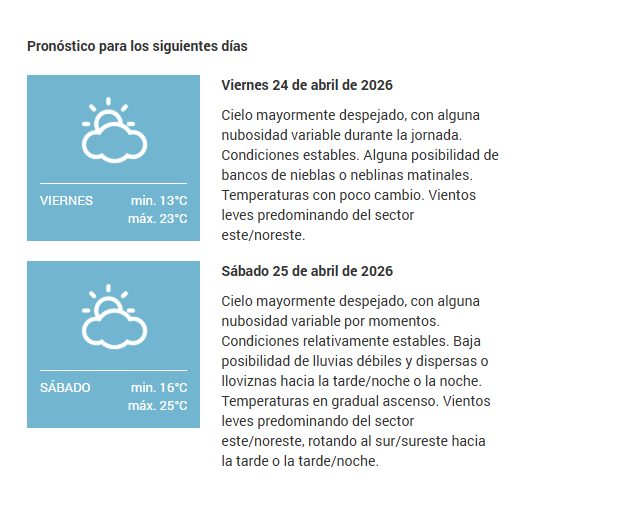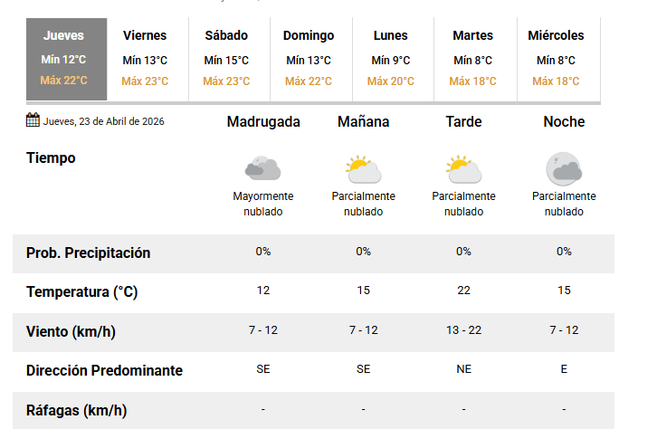 El SMN pronostica para hoy jueves 23 de abril 2026 en la ciudad de Santa Fe de la Vera Cruz capital de la provincia de Santa Fe República Argentina.