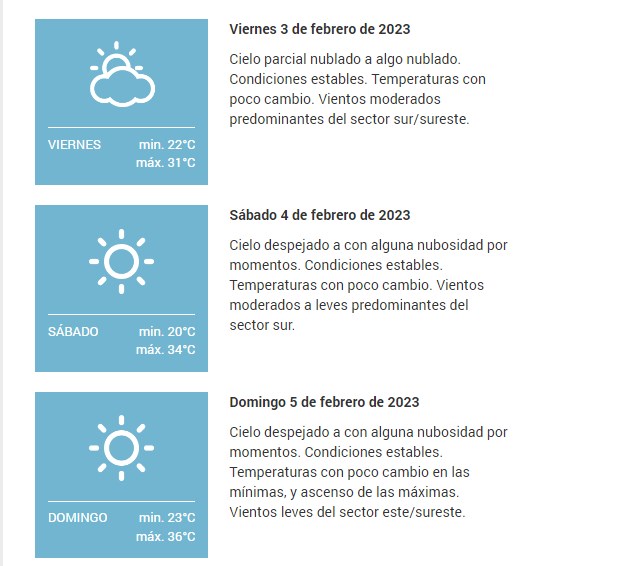 El SMN pronostica para hoy jueves 2 de febrero 2023 para la ciudad de Santa Fe