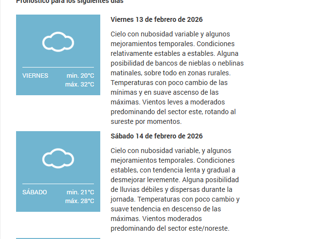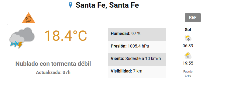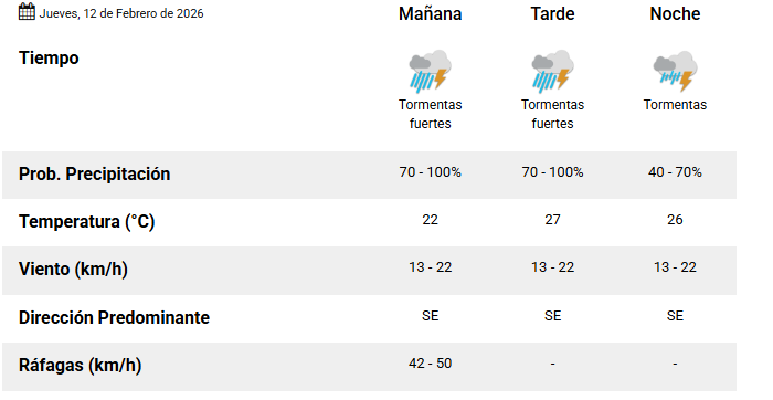 El SMN pronostica para hoy jueves 12 de febrero 2026 en la ciudad de Santa Fe de la Vera Cruz capital de la provincia de Santa Fe República Argentina.