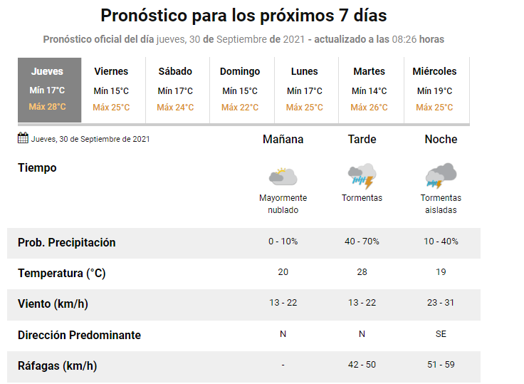 El SMN pronostica para hoy jueves 30 de septiembre 2021 para la ciudad de Santa Fe y zona