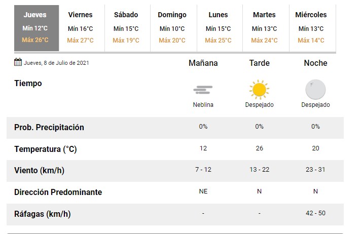 El SMN pronostica para hoy jueves 8 de julio 2021 para la ciudad de Santa Fe