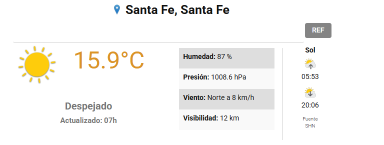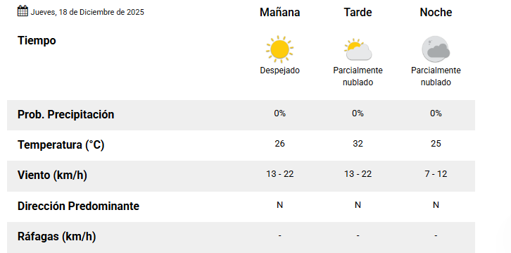 En tanto que el Centro de Informaciones Meteorológicas de la FICH-UNL pronostica para hoy jueves 18 de diciembre 2025 en la ciudad de Santa Fe de la Vera Cruz capital de la provincia de Santa Fe República Argentina.
