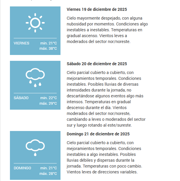 El SMN pronostica para hoy jueves 18 de diciembre 2025 en la ciudad de Santa Fe de la Vera Cruz capital de la provincia de Santa Fe República Argentina.