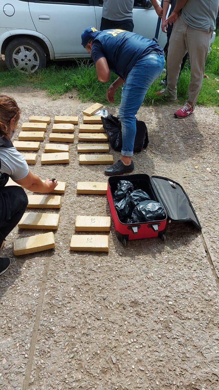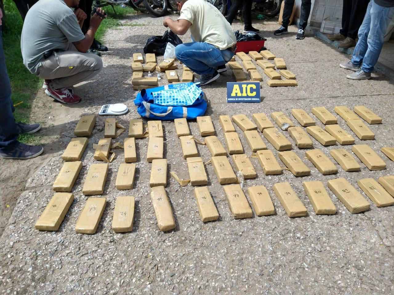 La Brigada Operativa Antinarcóticos Uno, de la Agencia de Investigación Criminal secuestró este mediodía más de 70 kilos de Marihuana y detuvo a dos narcotraficantes luego de una persecución que se inició en Avenida Gobernador Freyre y calle Junín, cuando los investigadores se encontraban realizando tareas de control selectivo de personas y vehículos.