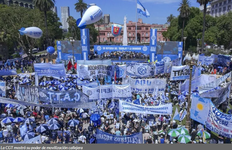 Desplegó todo su aparato. Copó el centro porteño para mandar un mensaje bélico al Gobierno liberto, que pateó para febrero el debate en el Congreso. Huelga en puerta.