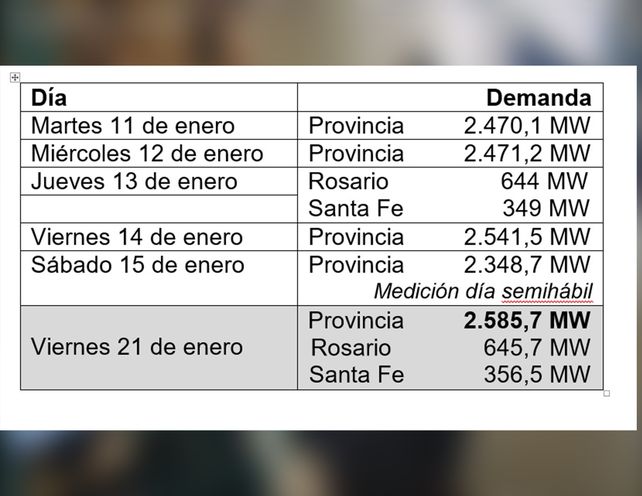 La Empresa Provincial de la Energía informa que este viernes, se registró un nuevo récord de demanda de potencia en el sistema eléctrico santafesino, alcanzando 2.585,7 MW a las 14.55 hs de este viernes.