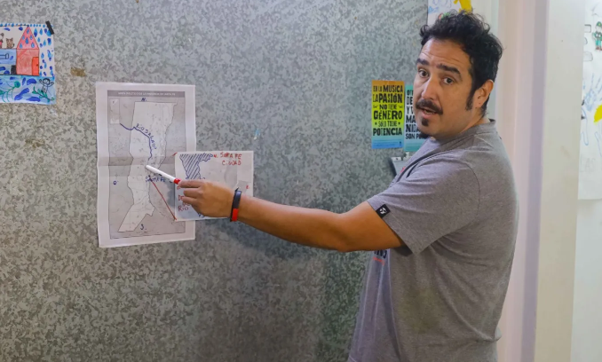 El trabajo en las pizarras y mesas de las Estaciones incluye herramientas como mapas e imágenes que sirven para entender el comportamiento del río de la región. Sarcos precisó: “Trabajamos el tema de la historia, el cauce del río, la parte geográfica y cómo eso afectó a la ciudad. También la cuestión cartográfica tratando de ampliar varios temas con la cuestión de la inundación”.