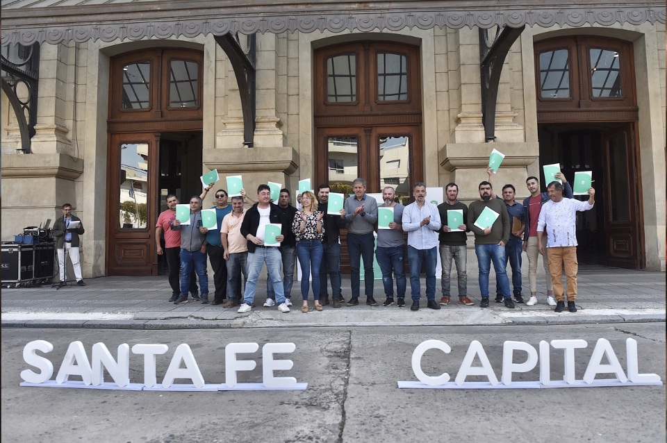La explanada de la Estación Belgrano fue el escenario elegido para la entrega de nuevas licencias a taxistas y remiseros de la ciudad de Santa Fe. Se trata de una segunda tanda y esta vez fueron 45. También se reconoció a los 46 titulares que recibieron sus chapas hace dos meses, completaron la documentación requerida y ya prestan el servicio. El intendente Emilio Jatón encabezó la actividad que se inscribe en el proceso de regularización impulsado por la dirección de Movilidad municipal.