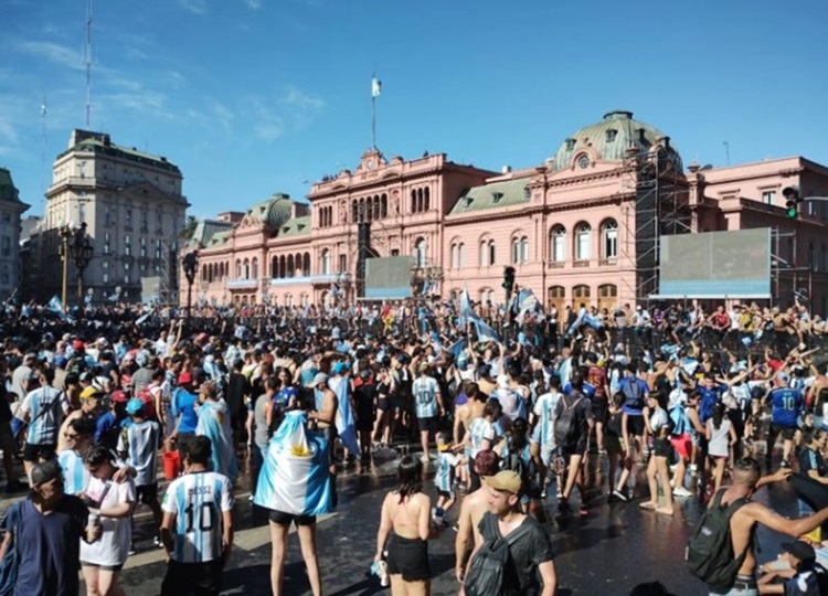 «Es que somos muchos… podía pasar». Dos chicos y una chica sostienen un cartel de calle en el medio de Plaza de Mayo. A su alrededor, la multitud ya no es tan grande, pero la fiesta es casi total. Los chicos y la chica levantaron un cartel de la calle Juan Domingo Perón que estaba en una vereda y se lo trajeron. No quisieron que quedara abandonado. Es cierto, la felicidad popular de este martes 20 de diciembre no tendrá equivalencias históricas, al menos por ahora: se calcula que por lo menos 4 millones de personas salieron a las calles del AMBA a festejar, a pesar de que Messi y los jugadores de la Scaloneta nunca lograron siquiera subir a la Autopista 25 de Mayo.