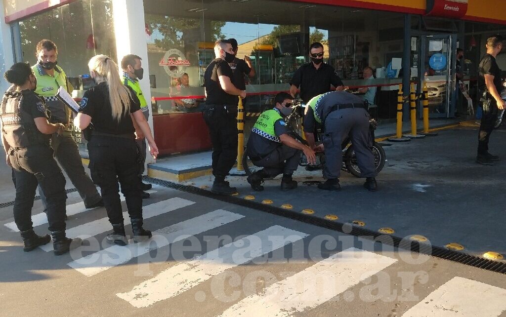 Agentes de la Brigada Motorizada de la policía de Esperanza, Departamento Las Colonias, interceptaron este miércoles por la tarde a un grupo de jóvenes en motocicleta en la estación de servicio Shell ubicada en ruta 70 y Simón de Iriondo para un chequeo de rutina. Algunos se dieron a la fuga y uno quedó en el lugar.