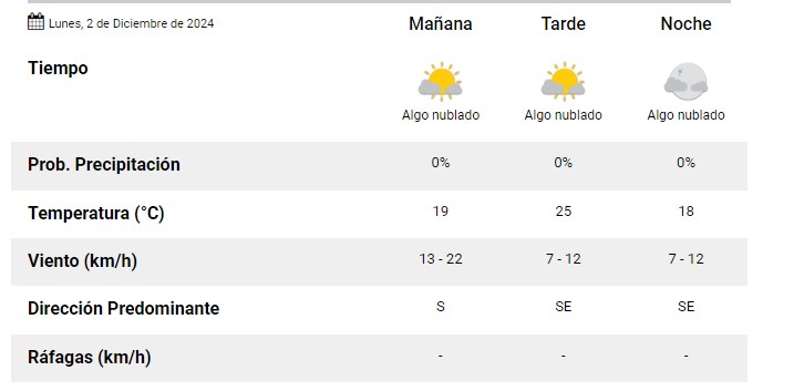 El SMN pronostica para hoy lunes 2 de diciembre 2024 para la ciudad de Santa Fe de la Vera Cruz capital de la provincia de Santa Fe República Argentina