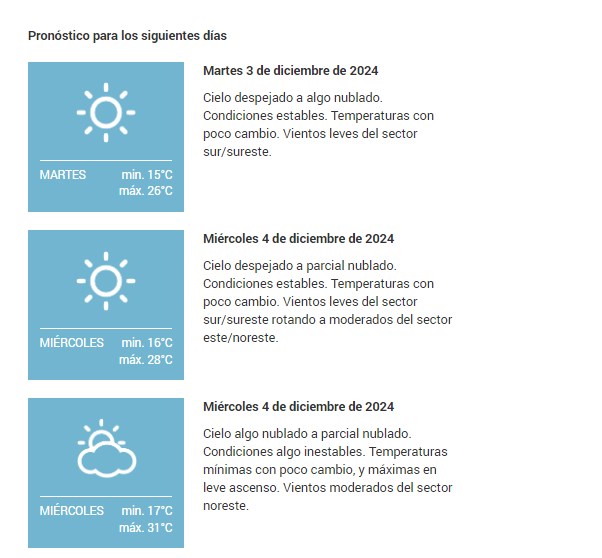 lunes El SMN pronostica para hoy lunes 2 de diciembre 2024 para la ciudad de Santa Fe de la Vera Cruz capital de la provincia de Santa Fe República Argentina