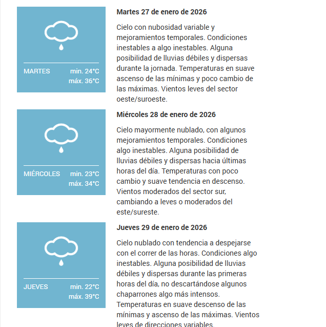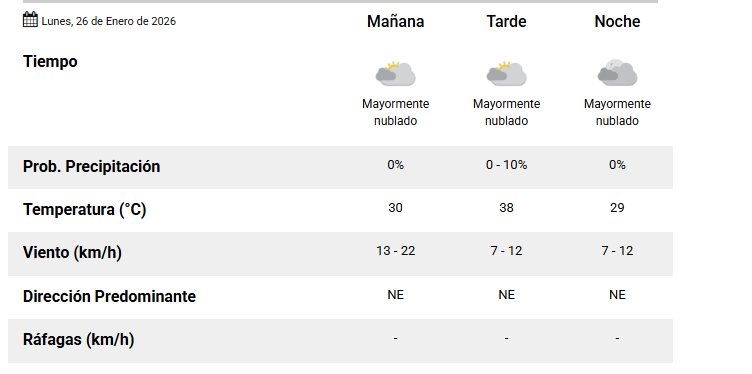 El SMN pronostica para hoy lunes 26 de enero 2026 en la ciudad de Santa Fe de la Vera Cruz capital de la provincia de Santa Fe República Argentina.