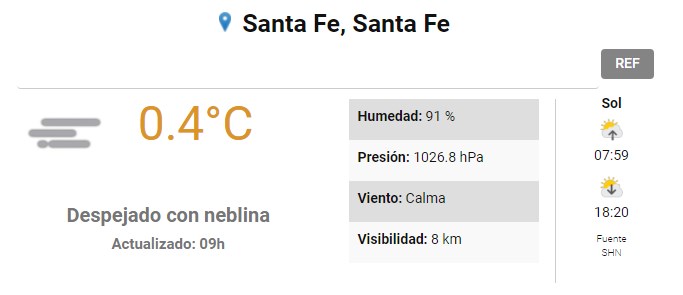 El SMN pronostica para hoy lunes 19 de julio para la ciudad de Santa Fe
