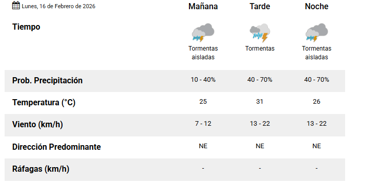 En tanto que el Centro de Informaciones Meteorológicas de la FICH-UNL pronostica para hoy lunes 16 de febrero día muy especial, en la ciudad de Santa Fe de la Vera Cruz capital de la provincia de Santa Fe República Argentina.