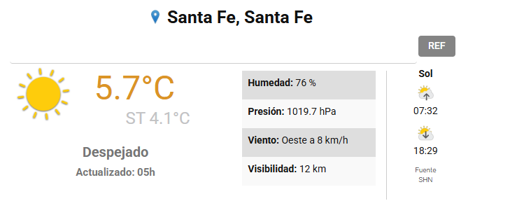 En tanto que el Centro de Informaciones Meteorológicas de la FICH-UNL pronostica: