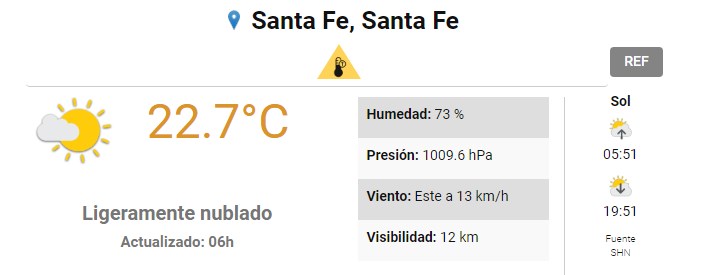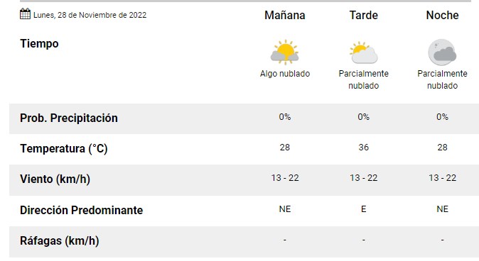 El SMN pronostica para hoy lunes 28 de noviembre 2022 para la ciudad de Santa Fe